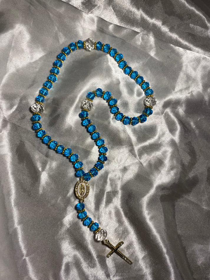 Le chapelet 'Douceur Azur' est une véritable œuvre d'art. Ses perles facettées en turquoise transparentes captent la lumière et scintillent délicatement, évoquant la pureté et la sérénité. Chaque perle est finement taillée pour offrir une texture agréable et élégante. La croix, ornée d'un diamant finement incrusté, ajoute une touche de luxe et de raffinement à l'ensemble. 'Douceur Azur' est non seulement un instrument de prière, mais aussi un bijou spirituel qui inspire paix et dévotion à chaque moment de méditation