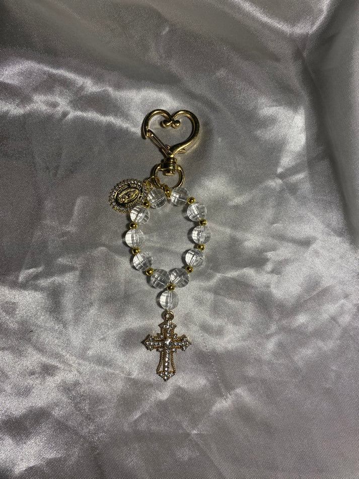 Le porte-clés "Halo de Paix" est une véritable œuvre d'art, conçu pour apporter sérénité et élégance à ton quotidien. Composé de perles transparentes d'une pureté exceptionnelle, chaque perle capte et reflète la lumière, créant un halo lumineux qui évoque la paix et la tranquillité. Au centre du dizainier se trouve une croix en métal argenté, subtile et raffinée, symbolisant la foi et la protection. Ce porte-clés n'est pas seulement un accessoire pratique pour garder tes clés en sécurité, mais aussi un rappel constant de la paix intérieure et de la spiritualité. Son design épuré et ses perles cristallines en font un compagnon idéal, apportant une touche de grâce et de lumière à chaque instant.