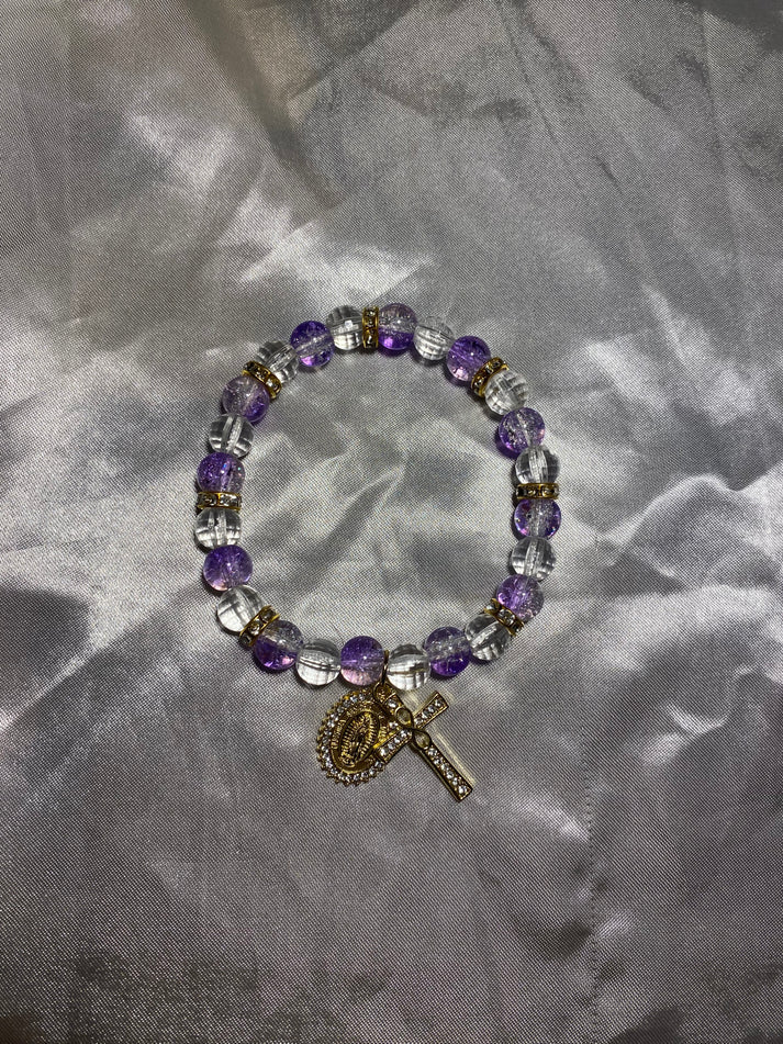 Découvrez notre bracelet "Brume Divine", une pièce élégante et raffinée qui saura sublimer votre poignet. Ce bijou est composé de perles violettes et transparentes, offrant un contraste harmonieux entre mystère et pureté. Chaque perle est soigneusement sélectionnée pour sa qualité et son éclat. Au centre du bracelet, une fine croix délicatement travaillée ajoute une touche de spiritualité et de sophistication. Parfait pour toutes les occasions, ce bracelet est un véritable must-have pour celles qui cherchent à allier style et signification. Ne manquez pas l'opportunité d'ajouter cette pièce unique à votre collection de bijoux.